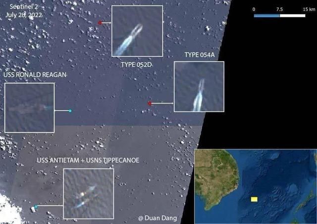 越南军事记者段当(Duan Dang)发布的中美海军舰船位置示意图