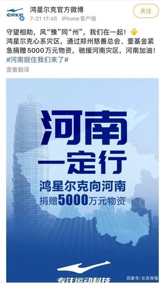 鸿星尔克又捐钱了,这次是1亿元的款物!