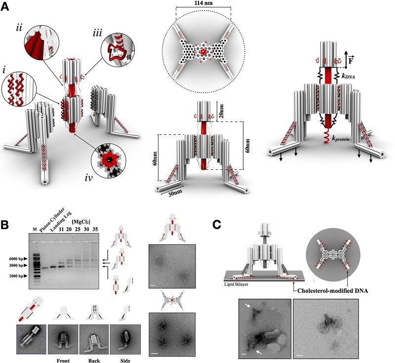 研究人员设计了由3种DNA折叠结构组成的“纳米机器人”,其大小与人类细胞的尺寸相兼容,首次使施加和控制分辨率为1皮牛顿(即1牛顿的万亿分之一)的力成为可能。这是人类制造的、基于DNA的自组装物体第一次能够如此准确地施力。