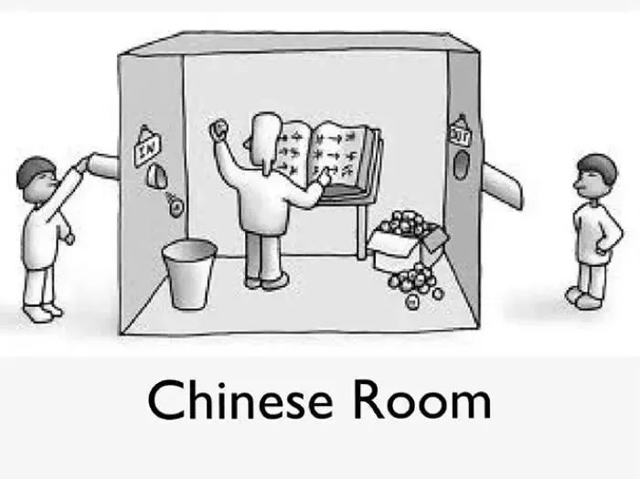 这就仿佛是一个「中文房间」:一个不懂中文,但学习能力超强的人坐在一间充斥着中文语法书的房间里,每当门外塞进一张写着中文问题的纸条,他就通过查阅语法书,在另一张纸条写上一个自己力所能及的中文回答送出去。