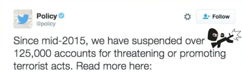 举个例子,有人在推特上声称自己刚刚加入当地的恐怖组织,或者自己正往行李箱里装炸弹准备前往机场。
