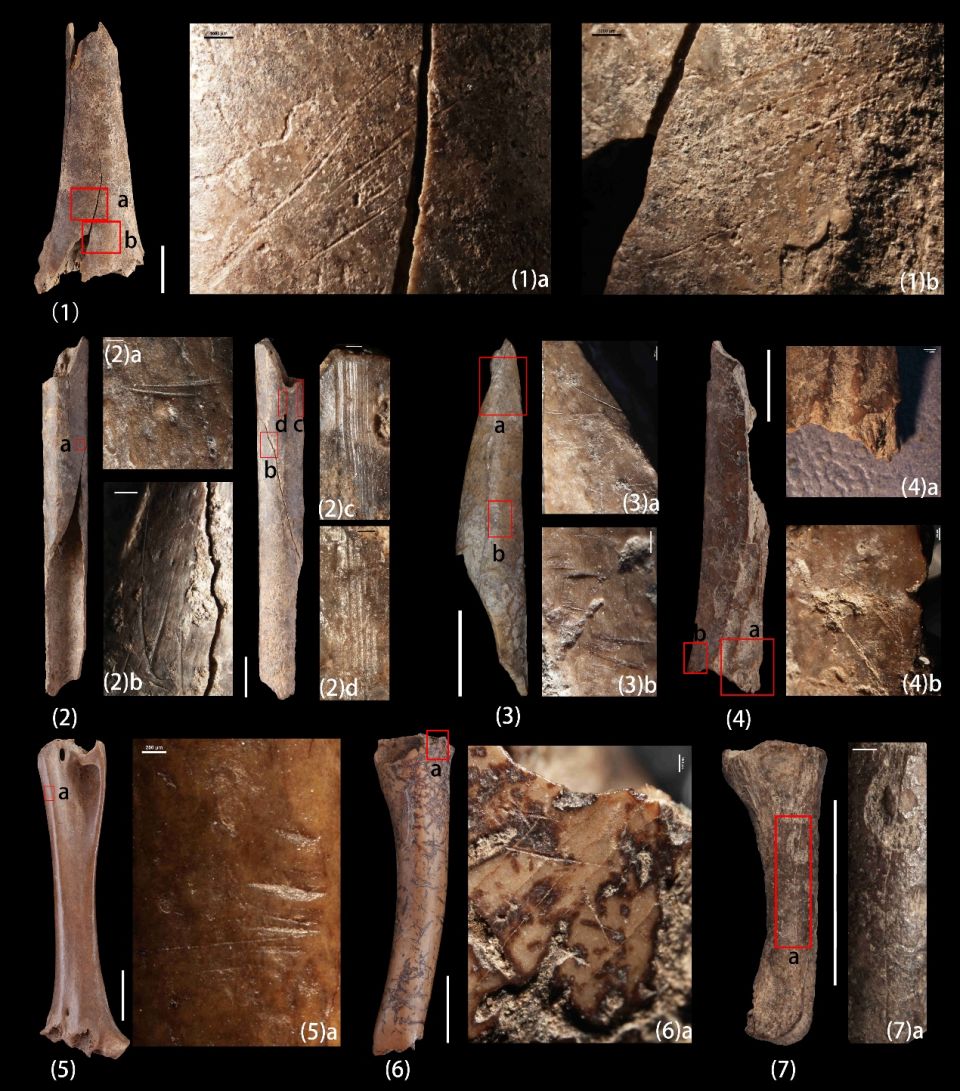 鸟类骨骼表面的切割痕迹。文中图片由中科院古脊椎所提供