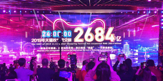 炣燃科技11月12日讯 11月11日24时,天猫“双十一”1天成交额定格在2684亿元,再次刷新记录,与去年相比,整整高了549亿,2018年双十一成交额是2135亿元。