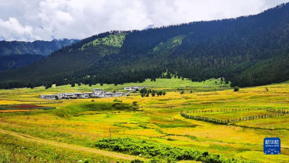 首页 夏日鲁朗镇 2022-08-08 08:34:52 分享 这是鲁朗镇扎西岗村(手机照片,8月6日摄)。西藏自治区林芝市鲁朗镇位于川藏公路边一处长约15公里的山谷之中,山谷两侧灌木、云杉和松树分布在不同的海拔高度,形成“鲁朗林海”景观。夏日的鲁朗镇,溪水潺潺,鲜花盛开,藏式村寨点缀其间,勾画出一幅恬静、优美的“高原山居图”。新华社记者 沈虹冰 摄