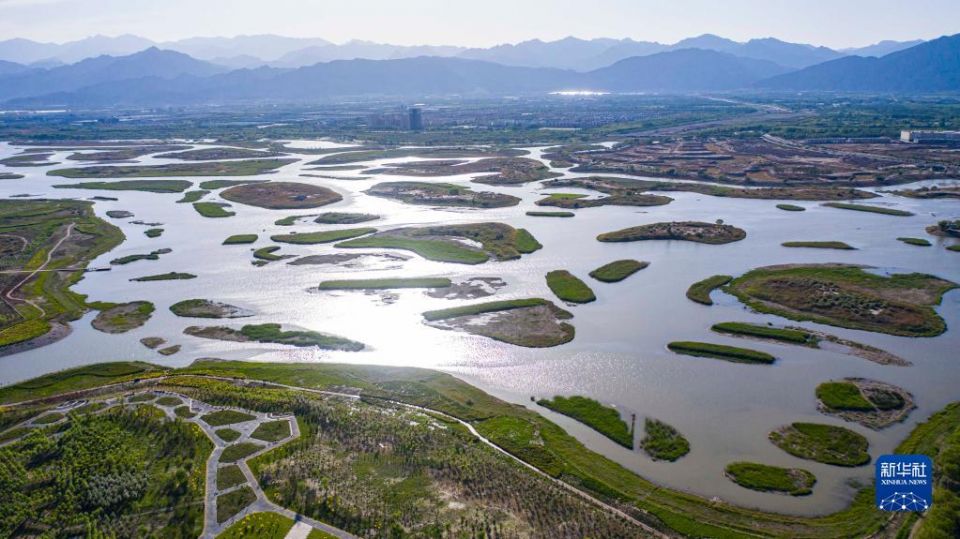 宁夏石嘴山市星海湖(2022年5月30日摄,无人机照片)。新华社记者 杨植森 摄