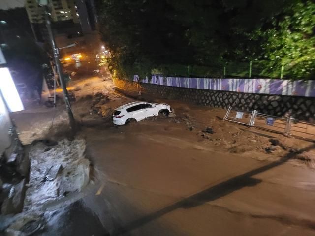 报道称,首尔部分地区、仁川、京畿道北部等地8日晚降雨量均达到每小时100毫米以上,首尔铜雀区每小时降雨量一度超过141.5毫米,创下1942年以来最大降水量。