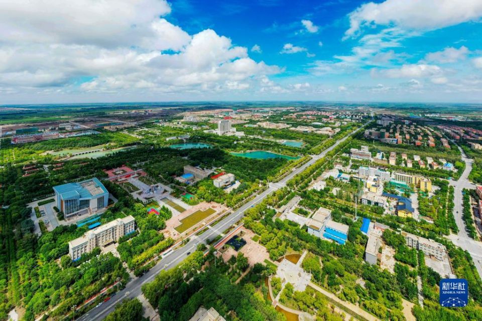 这是2021年7月22日拍摄的新疆生产建设兵团第三师图木舒克市(无人机照片)。新华社发(王俊龙 摄)