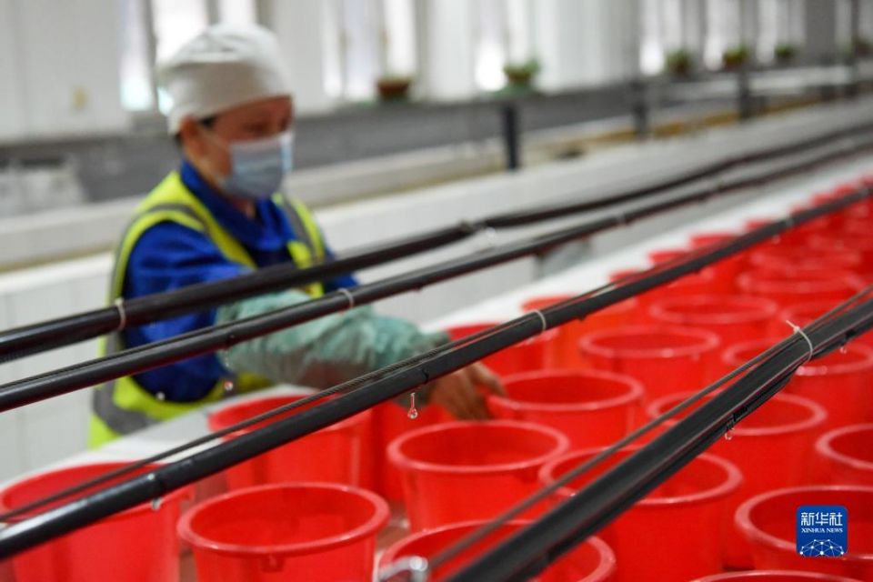 在新疆天业(集团)有限公司滴灌信息控制中心,工作人员在进行滴灌试验(2021年3月11日摄)。新华社记者 丁磊 摄