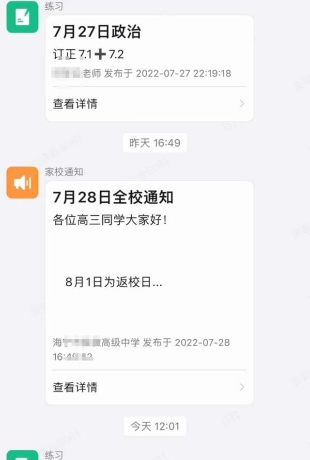 海宁某中学微信通知。