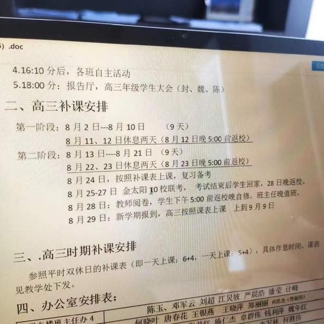 海宁某中学补课安排日程。
