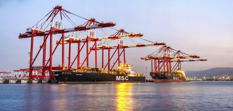 傍晚繁忙的海法新港。上港集团以色列公司供图