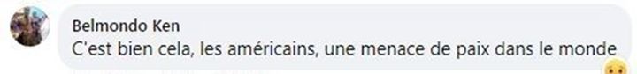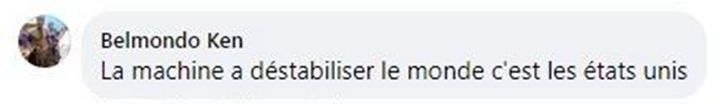喀麦隆网友贝尔蒙多·肯留言说,美国就像一部搅乱世界的机器,危害世界和平。