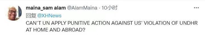 美国网友马伊纳呼吁联合国对美国违反《世界人权宣言》的行径作出惩罚。