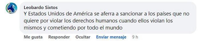 墨西哥网友莱奥瓦多说,美国总以“人权”为借口制裁他国,而实际上在全世界侵犯人权的正是美国自己。