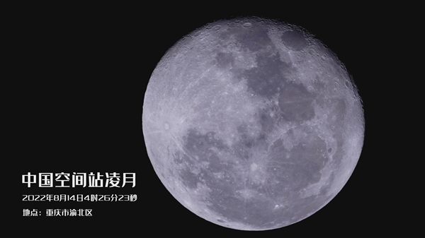 2022年8月14日凌晨4时26分23秒,在重庆市渝北区,有天文爱好者拍摄到了中国空间站凌月的罕见画面。