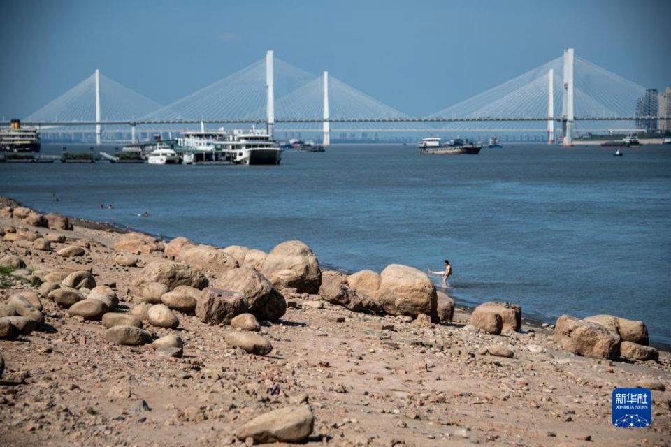 首页 长江武汉段出现历史同期最低水位 2022-08-16 08:49:07 分享 8月15日,武汉市民在汉口江滩戏水。今年长江进入主汛期后水位持续退落,出现了“汛期反枯”的罕见现象。截至15日18时,长江汉口站水位为17.22米,当前长江武汉段水位为有水文记录以来历史同期最低。新华社记者 伍志尊 摄