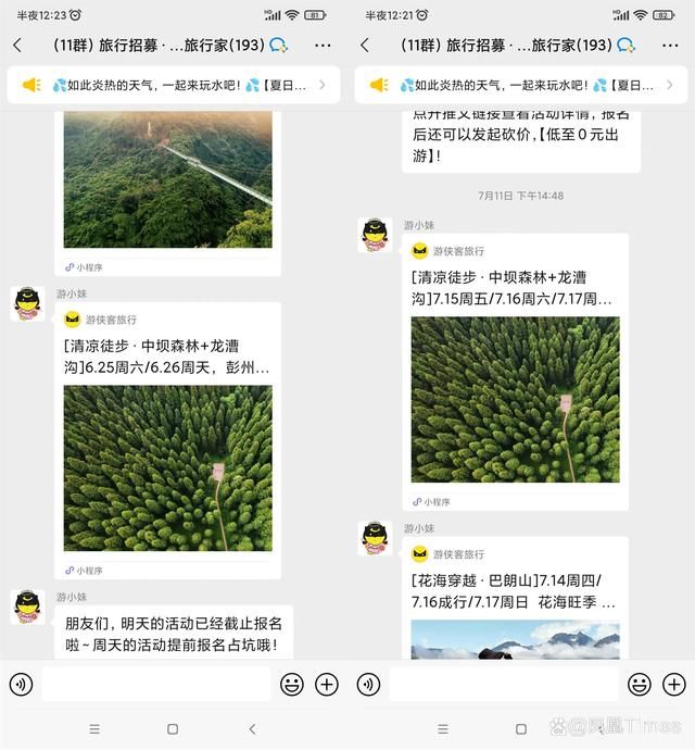 在游侠客回避问题、消极回应的过程中,一些资深团友从微信群聊记录、小程序中找出了2021年至今,游侠客成都分公司多次安排“中坝森林—龙漕沟”路线的“精彩照片回顾”宣传文章。而从今年路线表中,6月至8月,“中坝森林—龙漕沟”得到了密集的安排,截至出事前,今年已有8次发团记录。