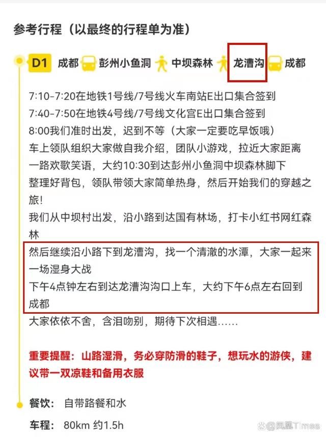 行程宣传称,在龙漕沟,“找一个清澈的水潭,大家一起来一场湿身大战。”