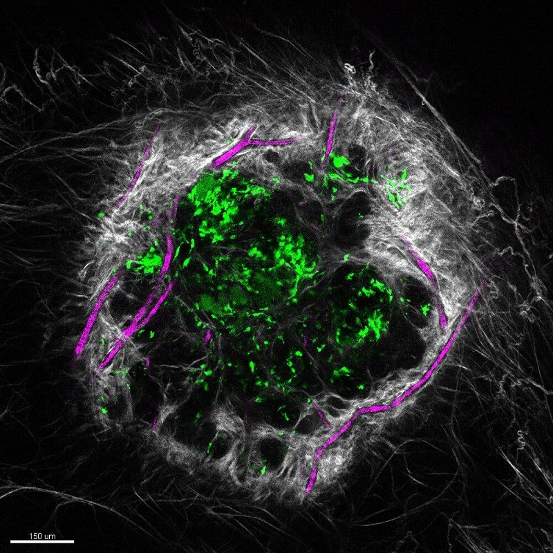 使用活体显微镜观察,研究人员能够在动物原型中可视化对金黄色葡萄球菌的免疫反应。金黄色葡萄球菌是一种常见于健康人体皮肤或鼻子上的细菌,可能是与皮肤 和组织感染有关的各种疾病的催化剂,如脓肿或疖子。在某些情况下,这种细菌可能会导致严重的感染,如肺炎和心内膜炎。