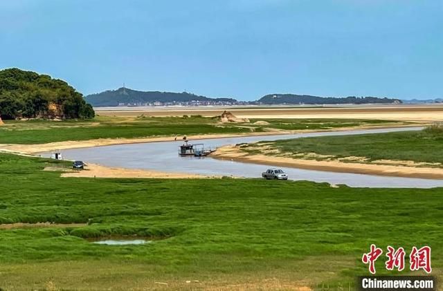 资料图:8月13日,在江西省九江市都昌县周溪镇枭阳10号附坝附近拍摄的干涸的鄱阳湖水域。傅建斌 摄