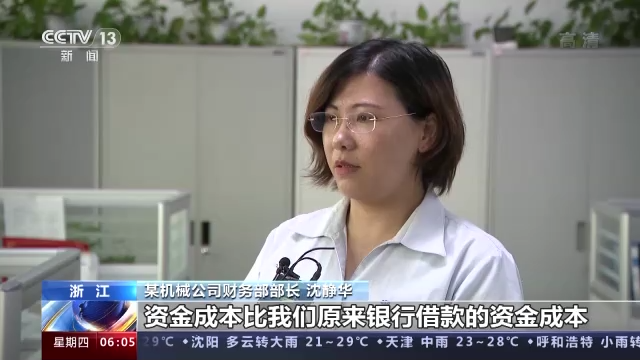 某机械公司财务部部长 沈静华:一天之内就帮我们办结了手续,我们很开心的,资金成本比我们原来银行借款的资金成本,一年大概节约了100多万(元)。