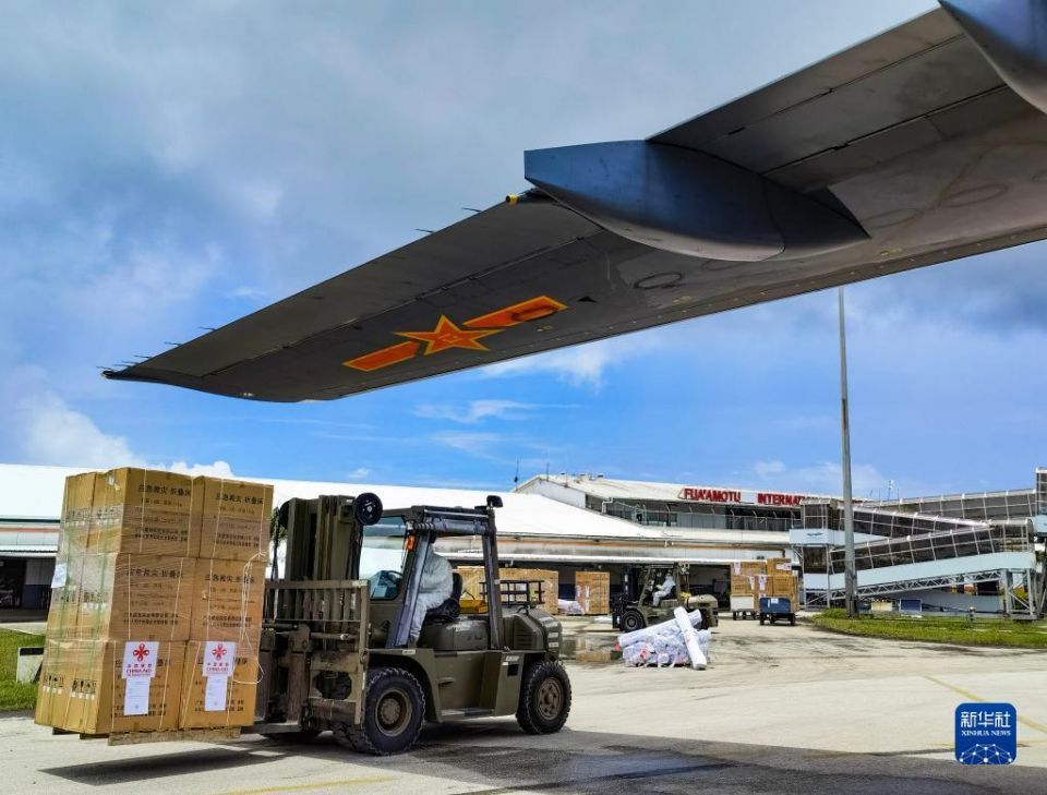 2022年1月,南太平洋汤加王国洪阿哈阿帕伊岛的海底火山突然喷发。应该国关于火山灾害救援的请求,中国派遣2架运-20向汤加运送救灾物 资。接受任务后,这个团飞行员周函和战友们驾驶运-20,搭载饮用水、帐篷、无线电通信设备等数十吨应急和灾后重建物资,昼夜兼程,将中国人民的深情厚谊 传递给汤加人民。
