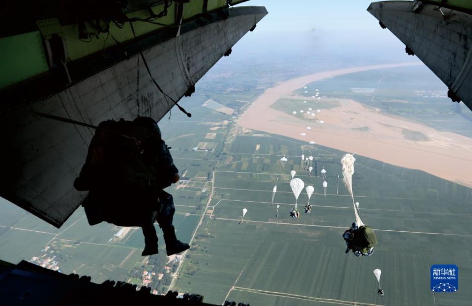 中部战区空军航空兵某团运-20飞机组织伞降训练(2021年4月18日摄)。新华社发(张猛 摄)