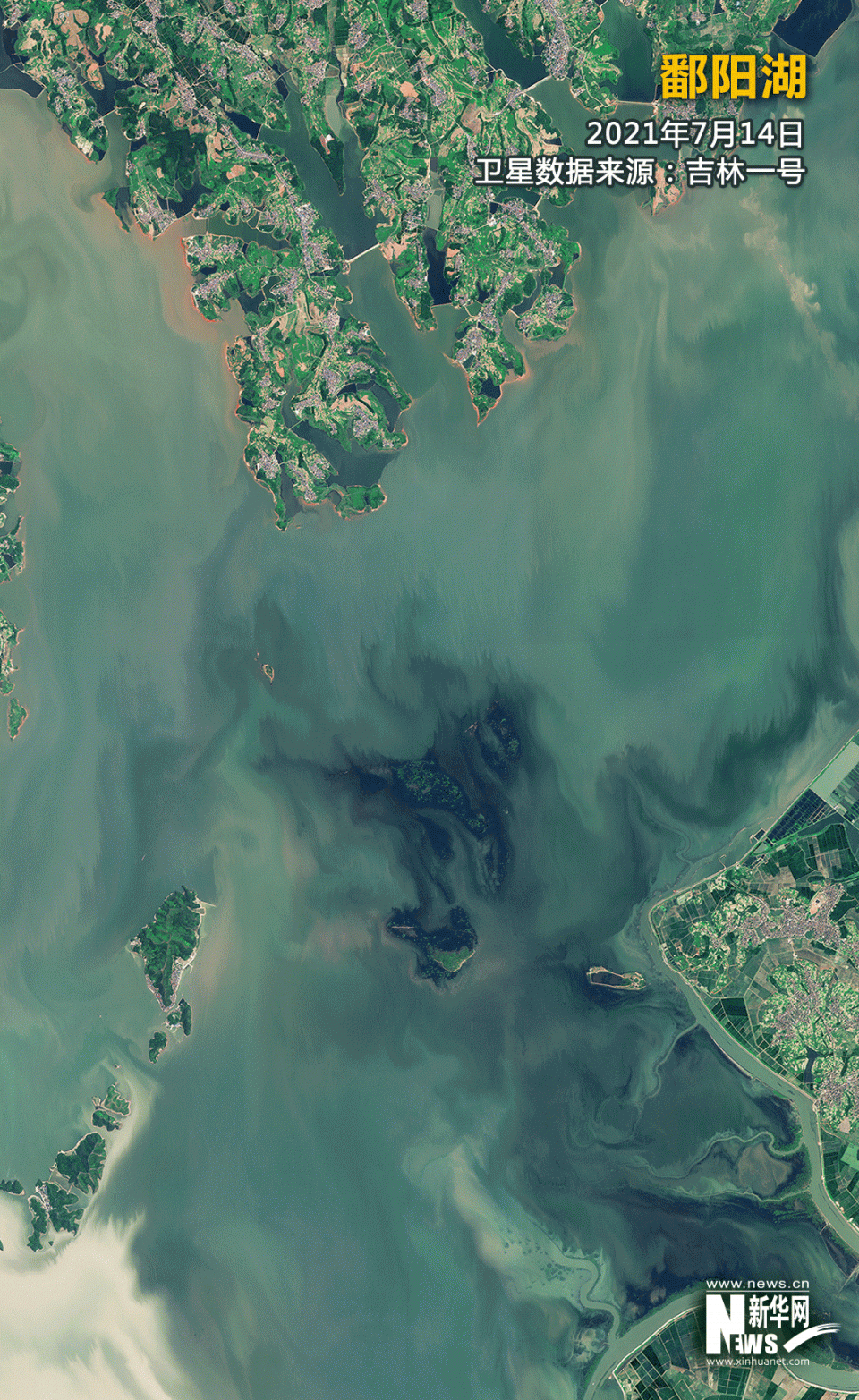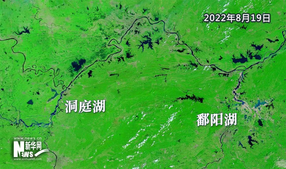 从卫星图上看,2022年8月的鄱阳湖水位较去年同期明显偏低,大面积湖床露出。