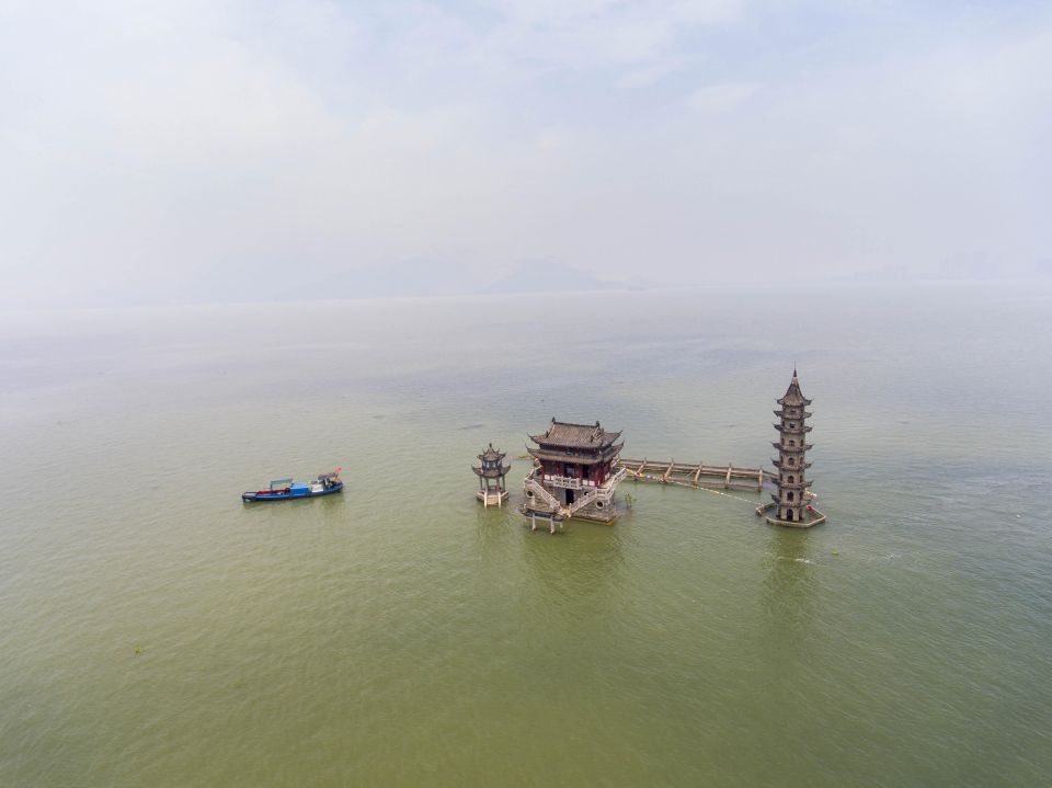 下图为2017年7月12日浸在水中的鄱阳湖落星墩。新华社发