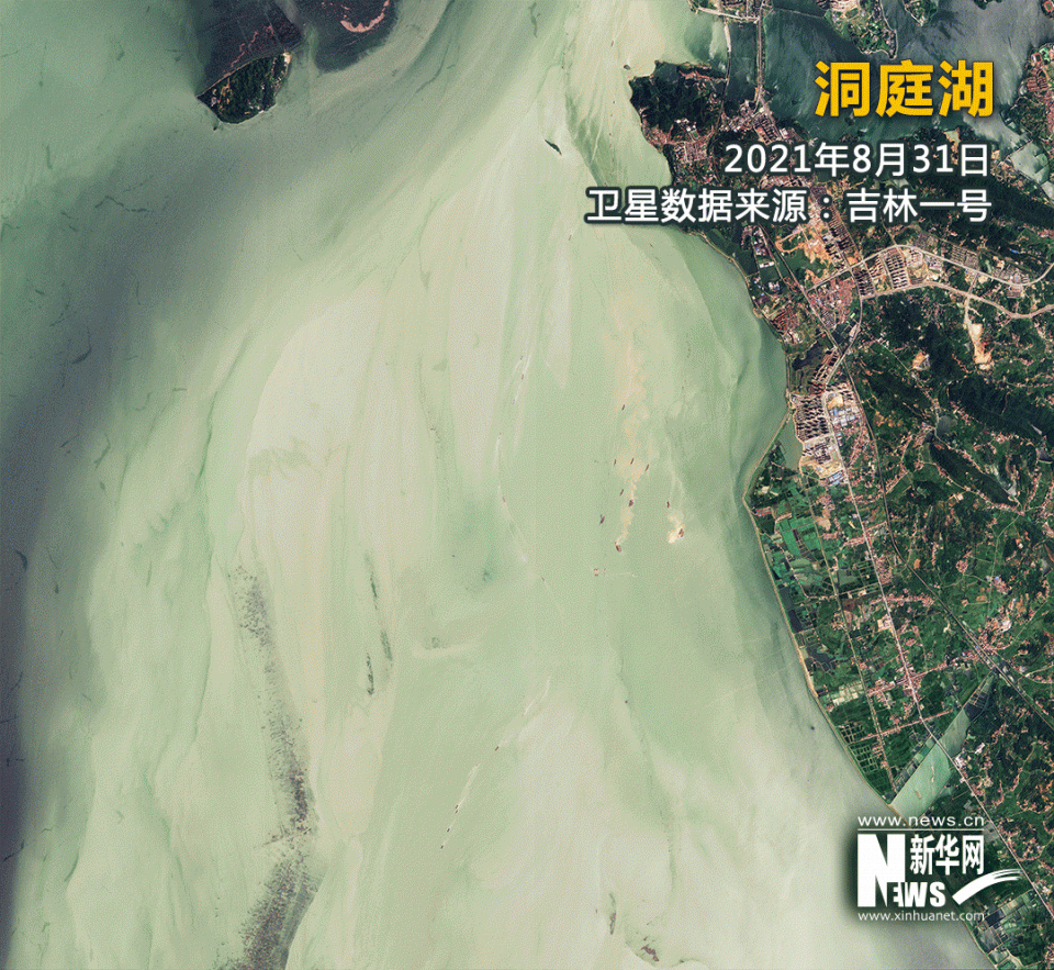 对比吉林一号卫星2021年8月和2022年8月拍摄的洞庭湖,可以明显发现,部分湖区变成“草原”。