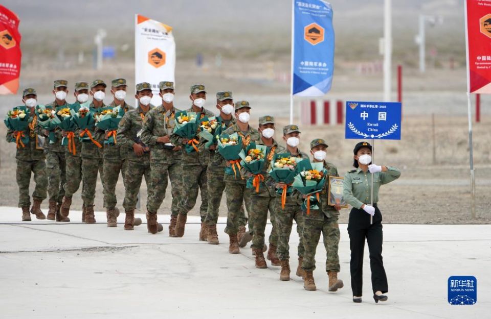 8月26日,“国际军事比赛-2022”中国库尔勒赛区举行闭幕式。新华社发(罗兴仓 摄)