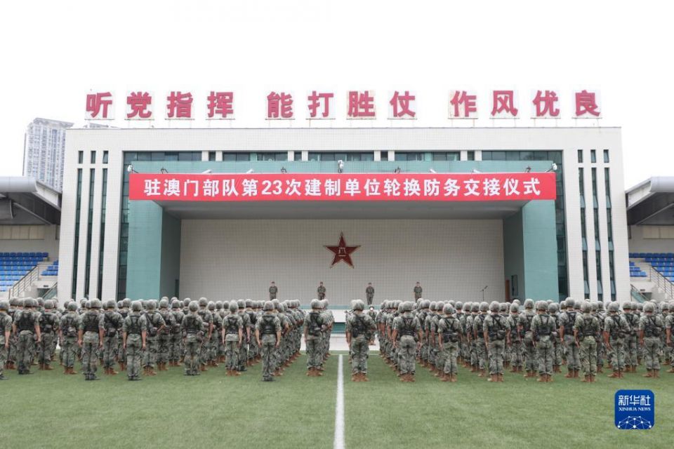 首页 中国人民解放军驻澳门部队第二十三次建制单位轮换工作顺利完成 2022-08-30 08:22:59 分享 8月29日,轮换部队组织防务交接仪式。新华社发(陈帅 摄)新华社澳门8月29日电(陈帅 刘刚)根据《中华人民共和国澳门特别行政区驻军法》和中央军委命令,中国人民解放军驻澳门部队于8月29日顺利完成进驻澳门以来第二十三次建制单位轮换。据介绍,此次轮换出澳的官兵圆满完成了驻防澳门的各项任务,以实际行动维护了国家安全和澳门繁荣稳定,展示了人民军队良好形象。轮换进澳的官兵进驻前进行了认真训练和学习,系统掌握了军事技能、澳门基本情况和有关法律知识,具备履行澳门防务的能力素质。