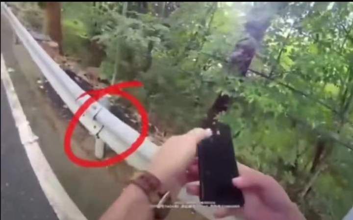 蒋明军沿着地上的刹车痕迹一路寻到事发地,在附近仔细寻找。不久后,小斯的家属也赶到现场。在大家的努力下,终于在护栏的缝里,找到了那块骨头。蒋明军立即汇报情指中心,带着小斯父母坐上警车,以最快的速度将骨头送往医院。