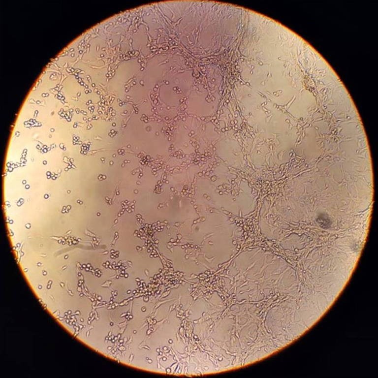 显微镜下可见细胞感染猴痘病毒后的变化过程。来源:奥斯瓦尔多·克鲁兹基金会