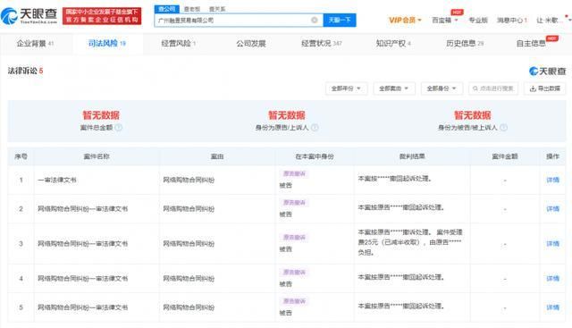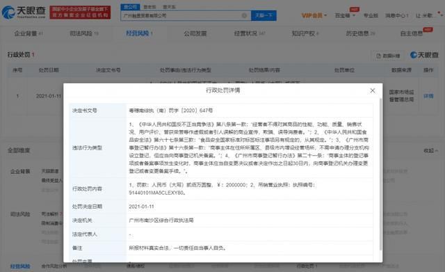 天 眼查App显示,“假燕窝事件”涉事品牌方为广州融昱贸易有限公司。该公司成立于2019年1月,注册资本100万人民币,法定代表人为谢东升。行政处罚 信息显示,该公司因虚假宣传、涉案产品标签存在瑕疵等,于2021年1月被罚款200万元并吊销营业执照。风险信息还显示,该公司存在2条被执行人信息和 1条限制消费令,被执行总金额超3496万元。同时,该公司还多次因网络购物合同纠纷被起诉。