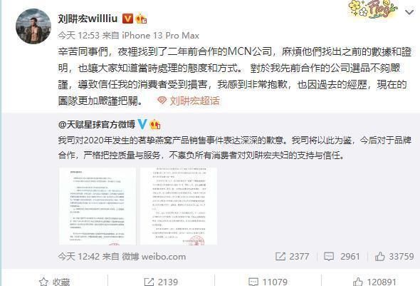 中 国经济周刊—经济网讯据媒体报道,近日,辛巴发长文爆料刘畊宏夫妇曾卖假燕窝。8月30日晚,“辛巴发长文爆料刘畊宏夫妇卖假货”的话题登顶微博热搜榜。 8月31日,该话题持续发酵,在微博的阅读量近6亿,引发网友热议。31日12点53分,刘畊宏发文道歉:“对于我先前合作的公司选品不够严谨,导致信任 我的消费者受到损害,我感到非常抱歉。也因过去的经历,现在的团队更加严谨把关。”
