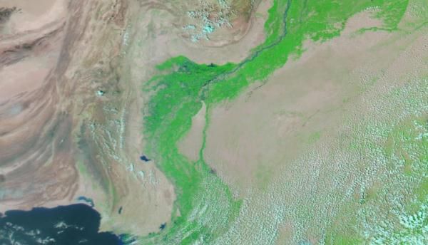 【环球网报道 记者 索炎琦】近日,巴基斯坦遭受严重洪涝灾害。美国有线电视新闻网(CNN)31日报道称,新的卫星图像显示,巴基斯坦印度河已经因洪水泛滥,将该国南部信德 省的部分地区淹没,并形成了一个宽度约达100公里的“内陆湖”。报道称,这显示了当前巴基斯坦创纪录洪水规模的严重程度。