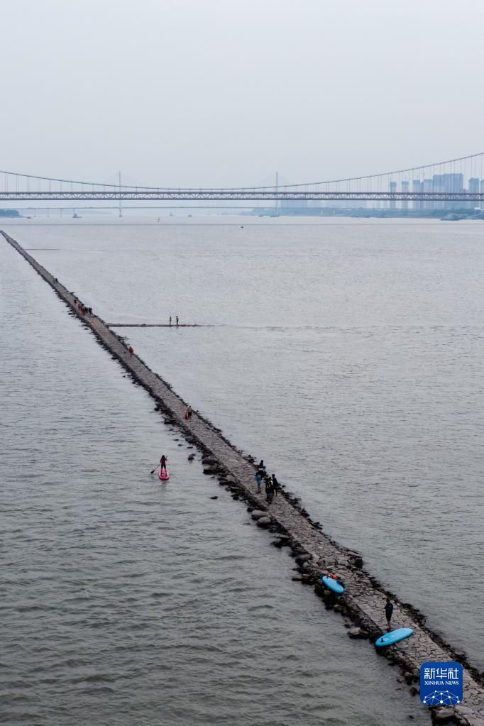 首页 水位持续下降 长江武汉段露出江心小道 2022-09-02 10:40:51 分享 9月1日,长江武汉段露出一条江心小道(无人机照片)。近日,长江武汉段水位持续降低,一条江心小道露出江面。截至9月1日20时,长江汉口站水位为14.67米,远低于历史同期平均水位。新华社记者 伍志尊 摄