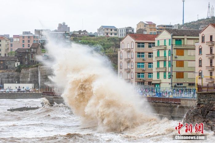 9月4日,浙江台州,第11号台风“轩岚诺”已进入我国东海东南部海面,并逐渐向浙江近海靠近。当天下午,温岭市石塘镇金沙滩海域掀起十米多高的惊涛巨浪。