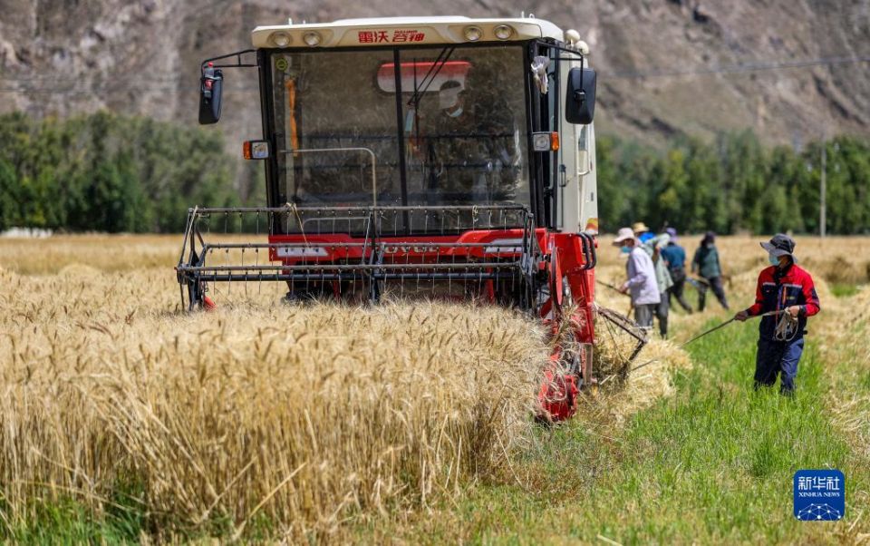 首页 西藏林周:不误农时秋收忙 2022-09-08 07:53:41 分享 农机合作社和收割工作队在林周县边林乡当杰村玉冲组抢收小麦(9月6日摄)。近日来,西藏自治区拉萨市林周县克服疫情封控及多雨天气的影响,组织农机合作社和收割工作队抢抓农时,保障秋收和疫情防控工作两不误。据介绍,截至9月5日全县已完成粮食收获面积9万余亩。新华社记者 姜帆 摄
