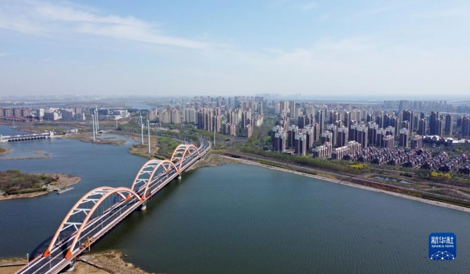 这是天津市滨海新区中新天津生态城(2022年4月14日摄,无人机照片)。新华社记者 赵子硕 摄