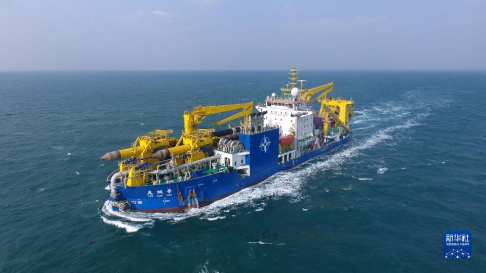 “天鲲号”在海上航行(2019年1月8日摄,无人机照片)。新华社发