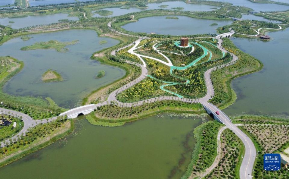 这是天津市西青区王稳庄镇生态廊道(2022年7月7日摄,无人机照片)。新华社记者 赵子硕 摄