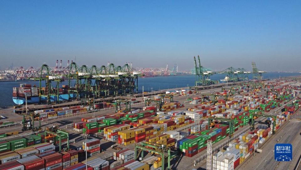 这是天津港太平洋国际集装箱码头(2021年12月18日摄,无人机照片)。新华社记者 赵子硕 摄