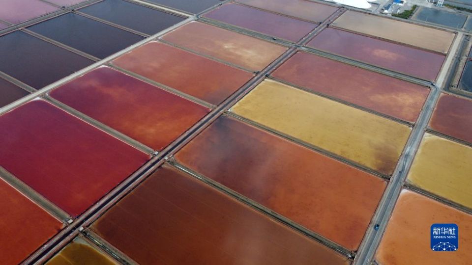 首页 天津:多彩盐田迎丰收 2022-09-16 08:16:22 分享 9月14日拍摄的天津长芦汉沽盐场(无人机照片)。近日,天津长芦汉沽盐场有限责任公司全面开展秋季收盐工作。据了解,天津长芦汉沽盐场是中国最早的临海盐场之一,距今已有千余年历史,具有多风少雨、海滩宽广、蒸发量大、海水含氯化钠量高等特点。盐场秋季收盐工作将于10月下旬结束,预计收盐22万吨。新华社记者 赵子硕 摄