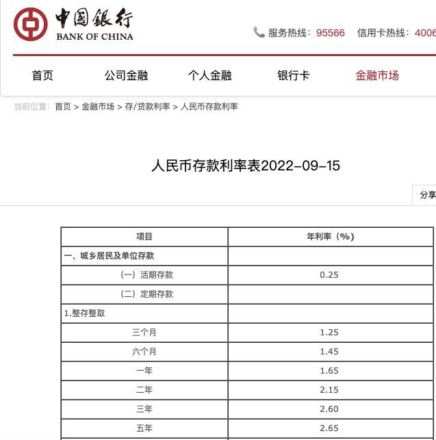 记 者注意到,各银行官网也发布了关于调整人民币存款挂牌利率的公告。建设银行官网公布的挂牌年利率显示,9月15日,3个月、6个月、1年期、2年期、5年 期定期存款利率分别为1.25%、1.45%、1.65%、2.15%、2.65%,均下降10个基点;3年期定期存款利率为2.60%,下调15个基 点。