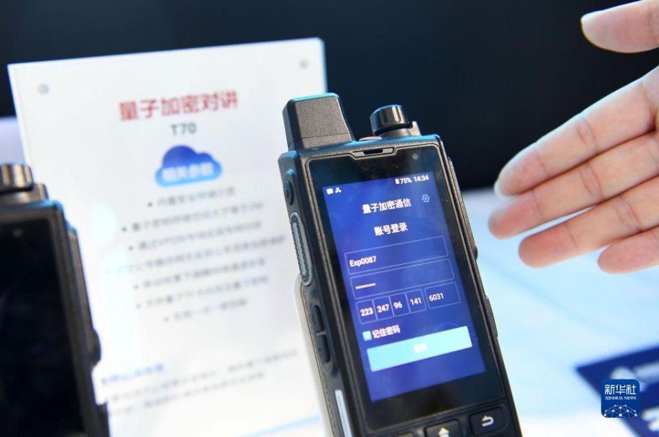 一家参展企业代表在2022年国家网络安全宣传周网络安全博览会上介绍量子加密对讲(2022年9月4日摄)。新华社记者 刘军喜 摄