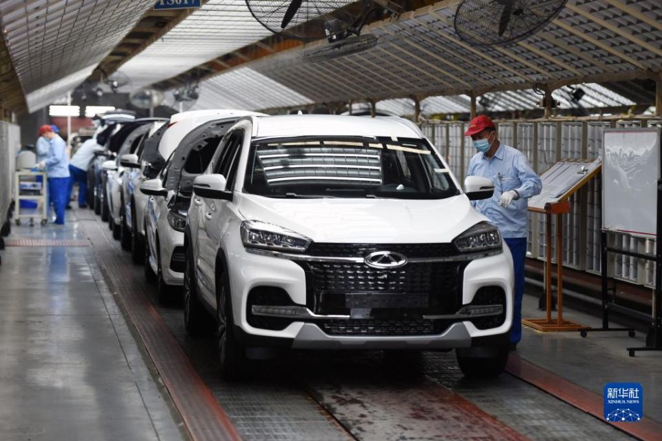 在位于安徽省芜湖市的奇瑞汽车股份有限公司,工人在总装三车间内工作(2020年5月20日摄)。新华社记者 周牧 摄