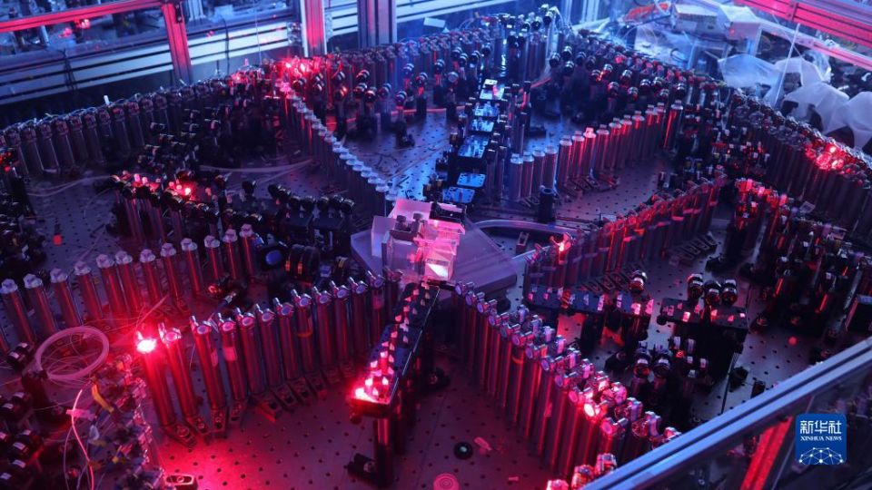 2020年12月4日,中国科学技术大学宣布该校潘建伟等人成功构建76个光子的量子计算原型机“九章”,这是光量子干涉实物图。新华社发
