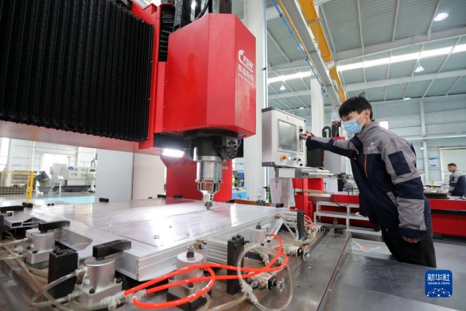 工人在安徽省淮北市一家陶铝汽车部件生产企业车间内作业(2021年12月23日摄)。新华社发(万善朝 摄)